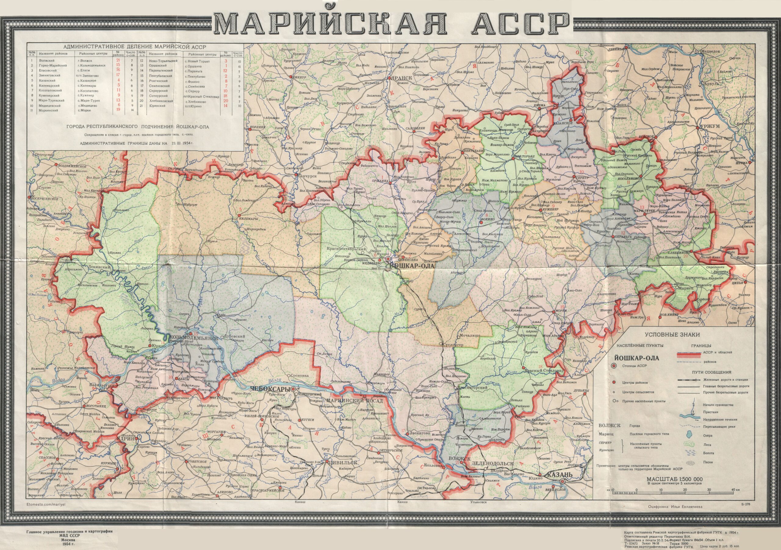 Карта Марийской АССР, 1954 г. (сайт etomesto.ru)