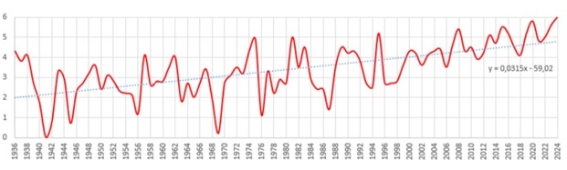Мы живем в период заметных климатических изменений. Меняется температура воздуха, продолжительность сезонов года, количество и распределение атмосферных осадков. Так по климатическим нормам для периода 1961-1990 гг. среднемноголетняя дата наступления метеорологической осени (устойчивый переход среднесуточной температуры воздуха ниже +15 °С) в Йошкар-Оле приходилась на 23 августа, а по климатическим нормам 1991-2020 гг. – уже на 28 августа.