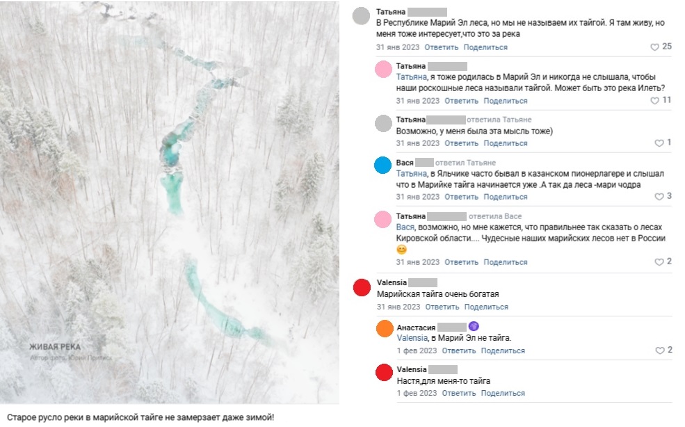 В 2023 г. в соцсетях разгорелся спор вокруг фотографии Юрия Притиска – участника фотоконкурса РГО «Самая красивая страна»: «А есть ли в Марий Эл тайга?».